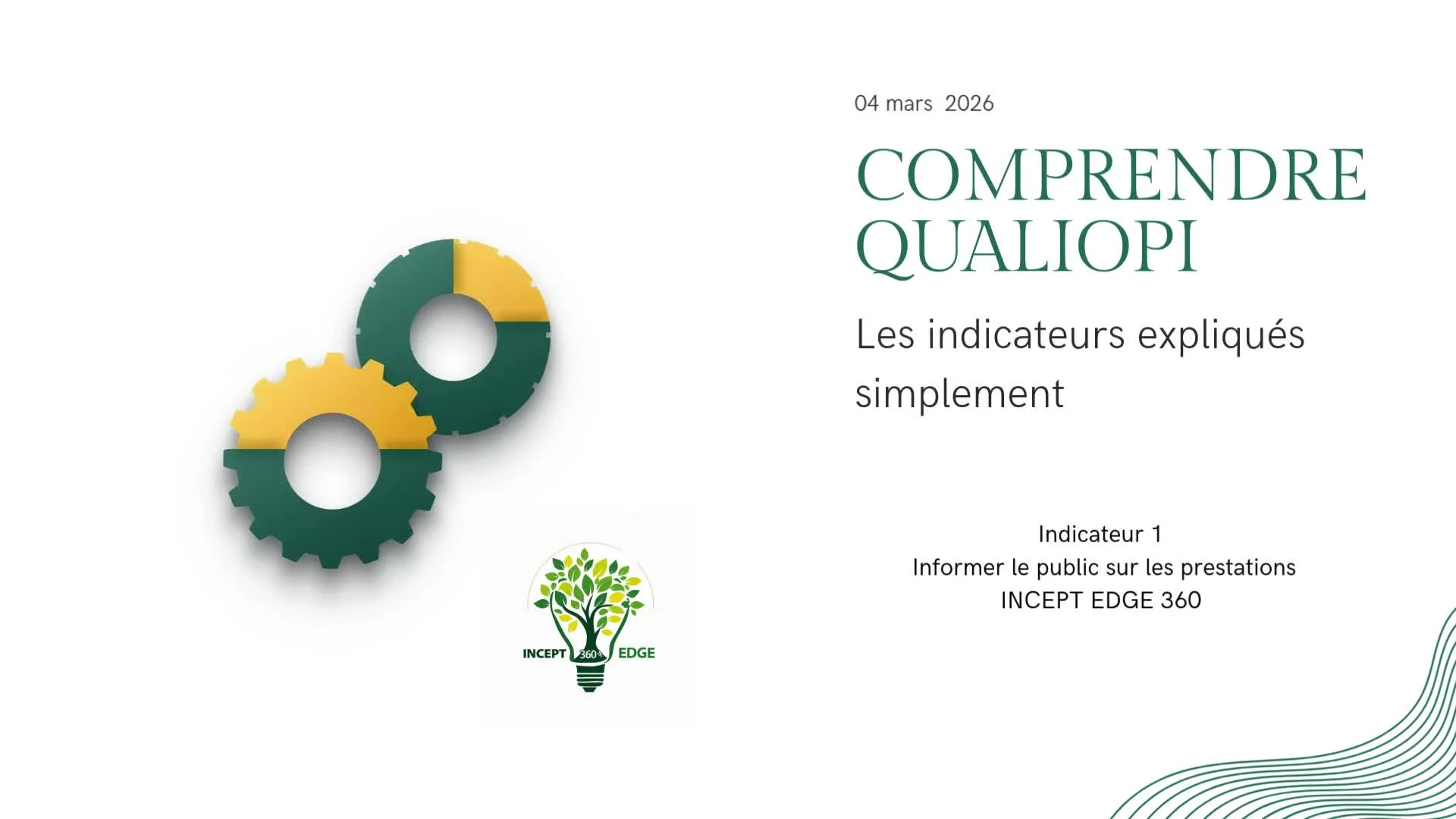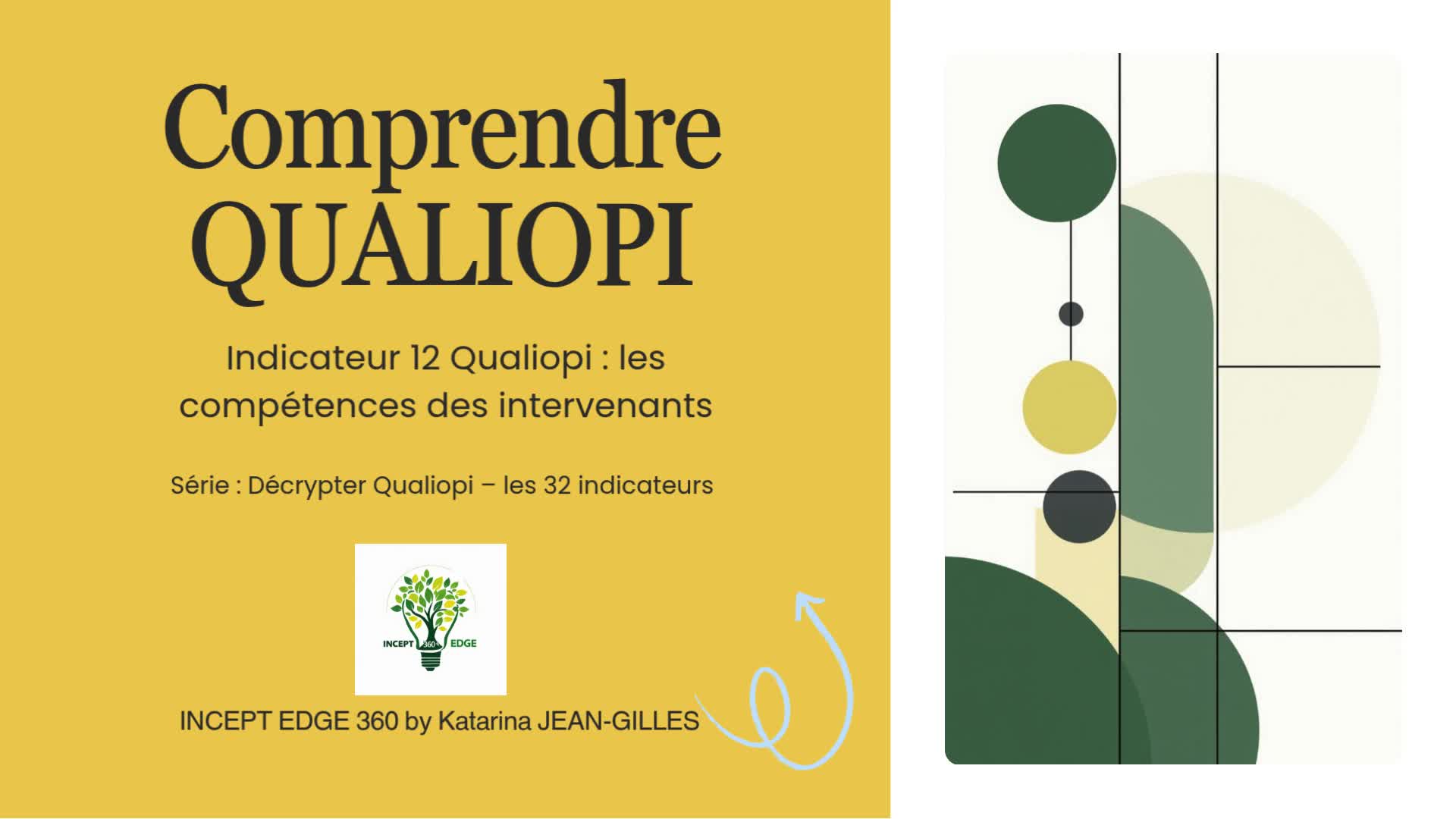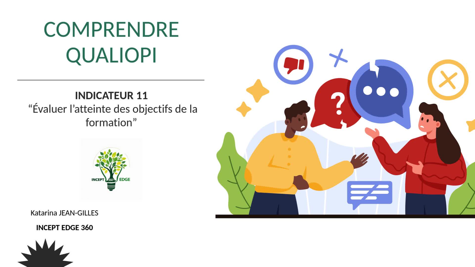 Passer aux vidéos Tous | qualiopi | Bienvenue – Décrypter Qualiopi simplement (présentation de la chaîne) Comprendre Qualiopi – Indicateur 1 : informer le public Comprendre Qualiopi –Indicateur 2 : identifier les objectifs et les compétences visées Comprendre Qualiopi – Indicateur 3 Qualiopi : adapter la formation aux besoins des apprenants Comprendre Qualiopi – Indicateur 4 : Moyens pédagogiques, techniques et encadrement Comprendre Qualiopi : Indicateur 5 – informer et accompagner les apprenants Comprendre Qualiopi : Indicateur 6 – qualification et compétences des formateurs Comprendre Qualiopi : Indicateur 7 – recueil et prise en compte des appréciations Comprendre Qualiopi : Indicateur 8 – Information du public sur les formations Comprendre Qualiopi : Indicateur 9 – Moyens pédagogiques, techniques et d’encadrement Comprendre Qualiopi - Indicateur 10 Qualiopi : Comment adapter l’accueil, l’accompagnement, le suivi et l’évaluation ? Comprendre Qualiopi - Indicateur 11 — Évaluation des acquis des apprenants Comprendre Qualiopi - Indicateur 12 : compétences des formateurs (explications + exemples)