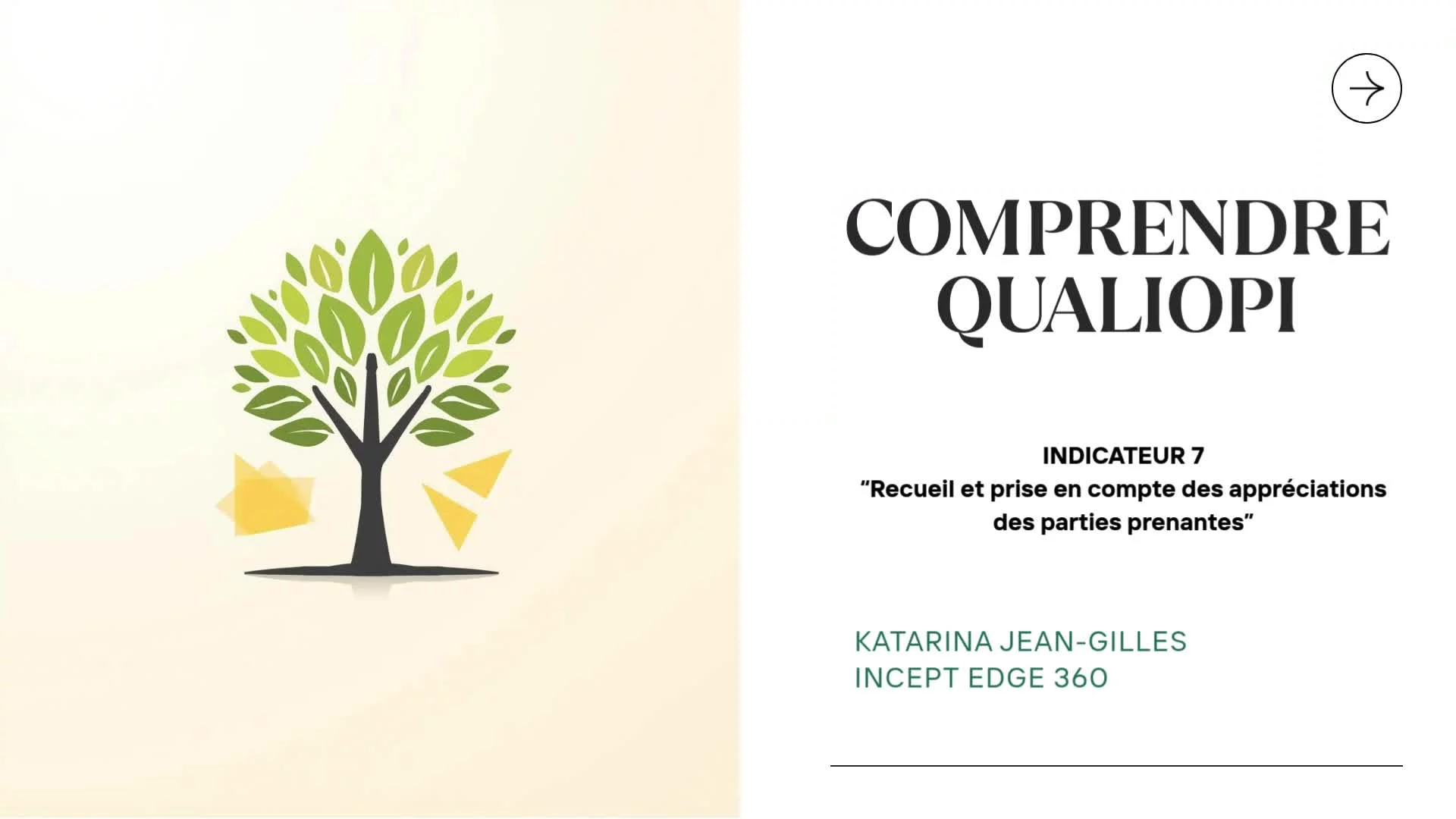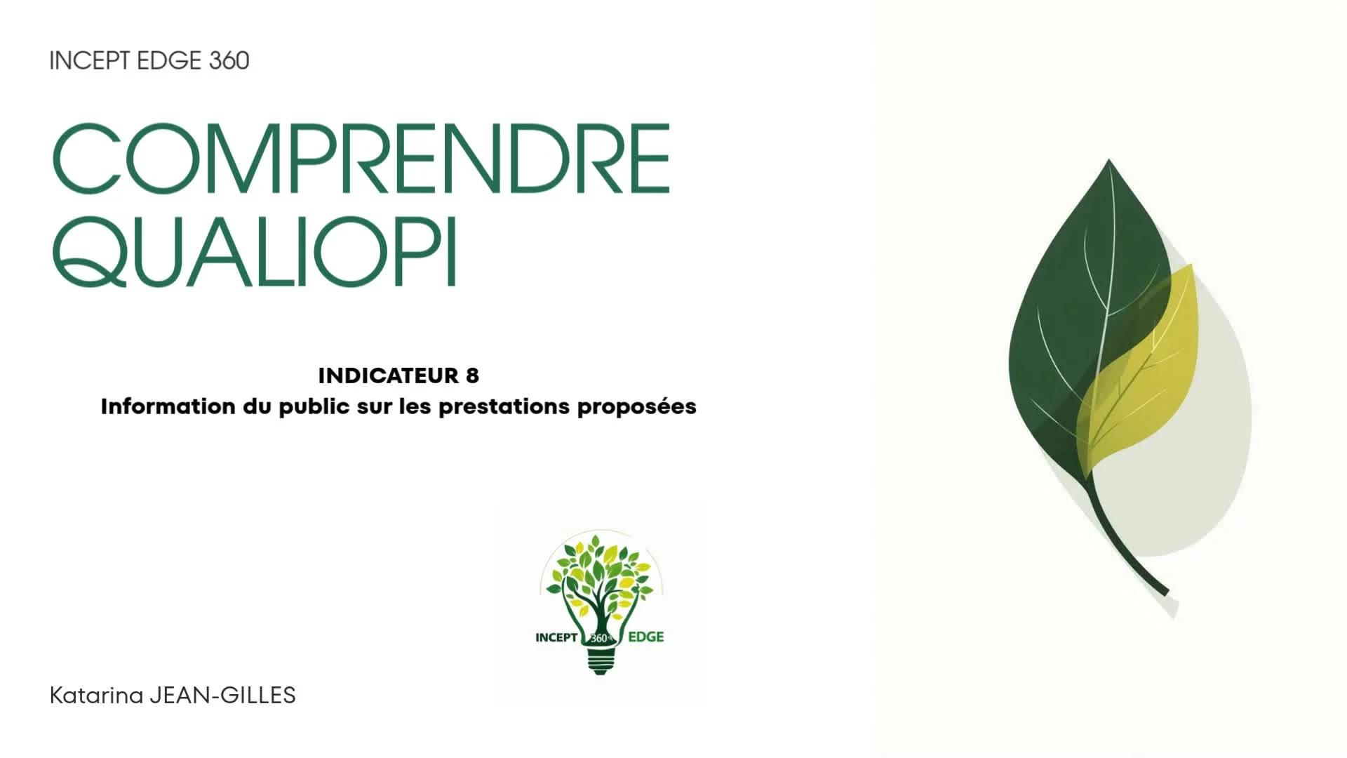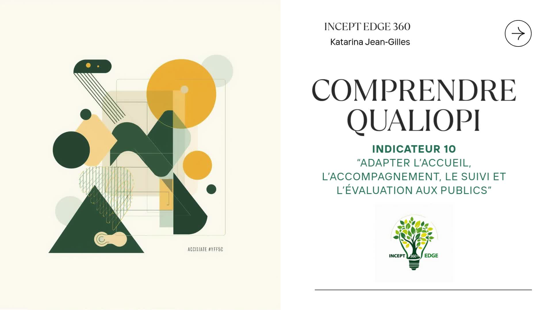 Passer aux vidéos Tous | qualiopi | Bienvenue – Décrypter Qualiopi simplement (présentation de la chaîne) Comprendre Qualiopi – Indicateur 1 : informer le public Comprendre Qualiopi –Indicateur 2 : identifier les objectifs et les compétences visées Comprendre Qualiopi – Indicateur 3 Qualiopi : adapter la formation aux besoins des apprenants Comprendre Qualiopi – Indicateur 4 : Moyens pédagogiques, techniques et encadrement Comprendre Qualiopi : Indicateur 5 – informer et accompagner les apprenants Comprendre Qualiopi : Indicateur 6 – qualification et compétences des formateurs Comprendre Qualiopi : Indicateur 7 – recueil et prise en compte des appréciations Comprendre Qualiopi : Indicateur 8 – Information du public sur les formations Comprendre Qualiopi : Indicateur 9 – Moyens pédagogiques, techniques et d’encadrement Comprendre Qualiopi - Indicateur 10 Qualiopi : Comment adapter l’accueil, l’accompagnement, le suivi et l’évaluation ? Comprendre Qualiopi - Indicateur 11 — Évaluation des acquis des apprenants Comprendre Qualiopi - Indicateur 12 : compétences des formateurs (explications + exemples)